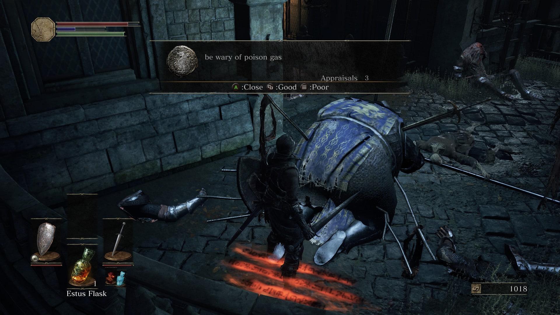 For those not familiar with the game or it's mechanics, an important part of Dark Souls is communicating with other players by posting short messages composed from a small set of static phrases (think mad-libs).